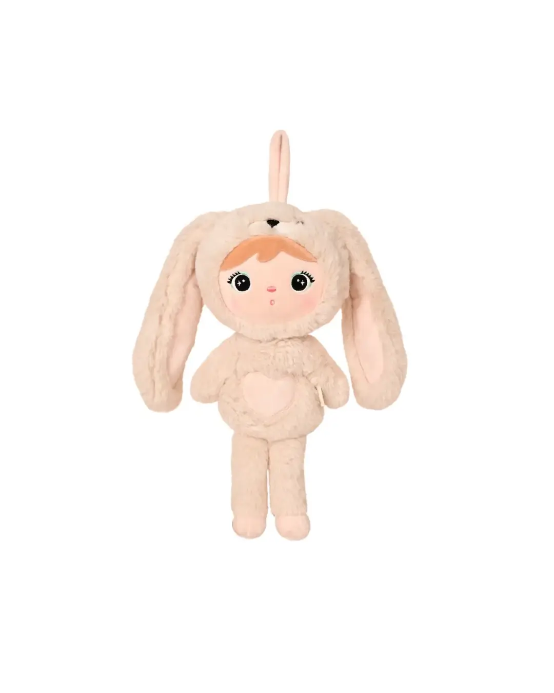 Na czubku głowy znajduje się pętelka, dzięki której króliczka możesz zawiesić przy wózku, foteliku lub na ścianie jako dekorację.